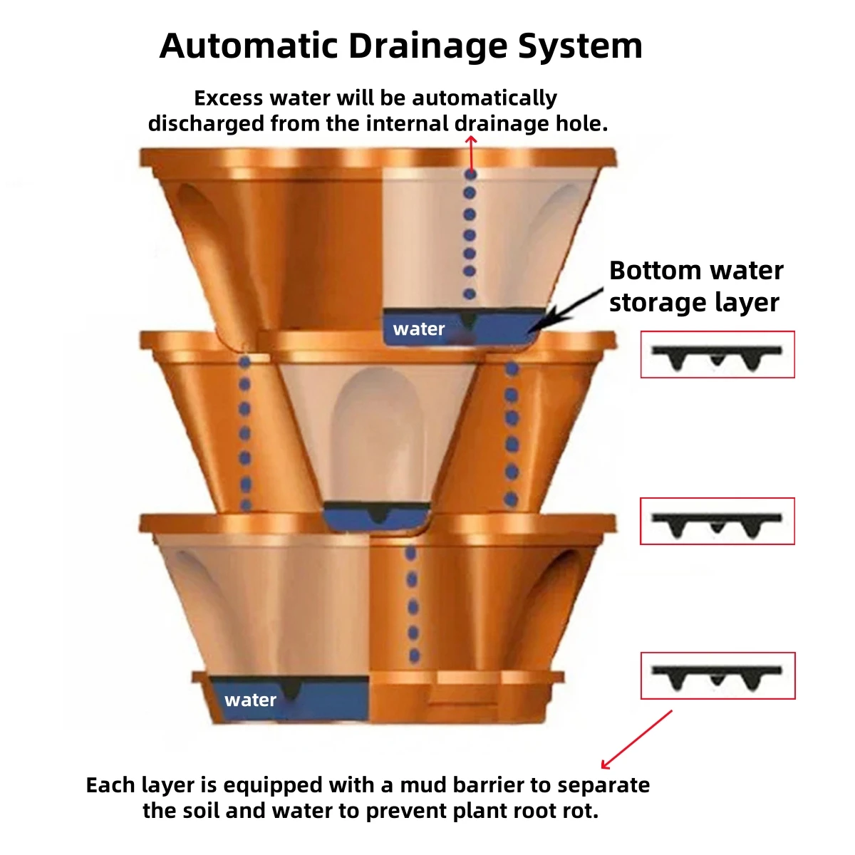 1. Water barrier: The bottom is equipped with a removable water barrier net, which can not only support the vegetable pot itself, but also filter excess water and protect the roots of plants.