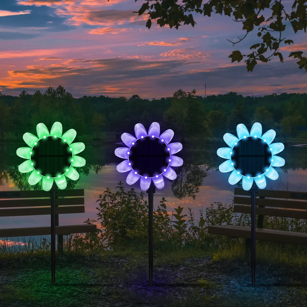 【Solar Sun flowers Lights】Outdoor Solar Pathway Lights use solar panels,charging the built-in 500 mAh large-capacity Ni-MH battery brings faster speed and higher efficiency,lights up for 8-10 hours on a full charge,bring color to your beautiful yard all night long.